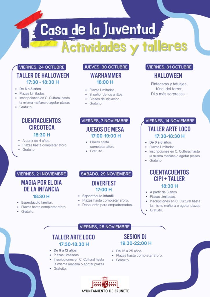 Vente y disfruta como en la vida. Este otoño la Casa de la Juventud te ofrece magníficas actividades para que nadie se aburra. Talleres, cuentacuentos, juegos de mesa, magia, DJs, warhammer y la preparación del Halloween.