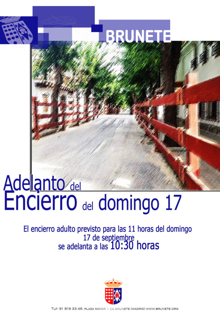 El domingo 17 de septiembre había previsto un encierro adulto de 11 a 12:45 horas que ha tenido que ser adelantado. Ahora saldrá a las 10:30 con el mismo recorrido.