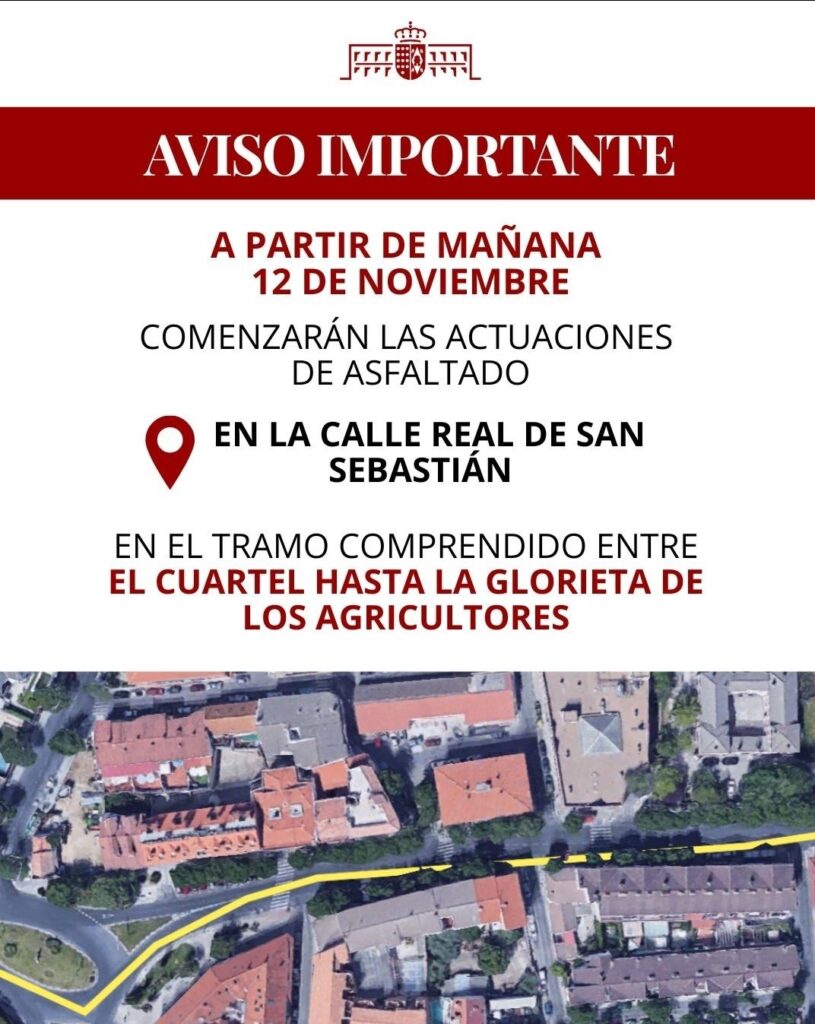 El 12 de noviembre comienzan las obras de asfaltado de la calle Real de San Sebastián, entre el Cuartel de la Guardia Civil y la rotonda de los Agricultores.
