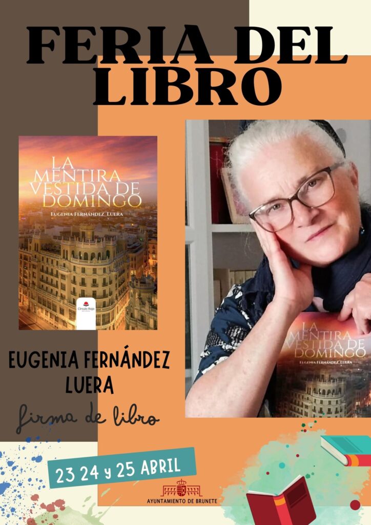 Si quieres comprar el libro LA MENTIRA VESTIDA DE DOMINGO, conocer a la autora y que te lo firme, no olvides pasarte por la explanada del Centro Cultural Aniceto Marinas el 23, 24 y 25 de abril, de 17 a 20 horas. Feria del libro de Brunete