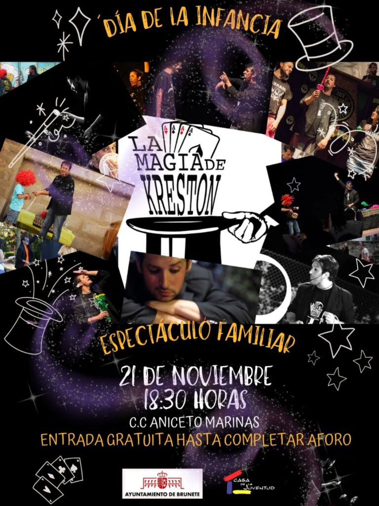 Ven a disfrutar, a dejarte sorprender, este 21 de noviembre, a las 18:30 horas, con el espectáculo La Magia de Kreston con el que celebramos el día de la infancia. La entrada será gratuita hasta completar aforo en el Centro Cultural Aniceto Marinas.