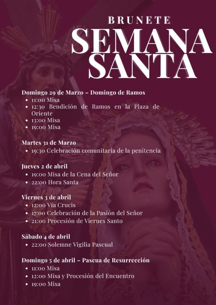 Brunete se vuelca con la Semana Santa y, como no podía ser menos, la mayoría de las actividades giran en torno a nuestra Iglesia Parroquial. Este año el pregón lo dará el exministro Jaime Mayor Oreja, presentado pro Rocío López y acompañado por la actuación del...