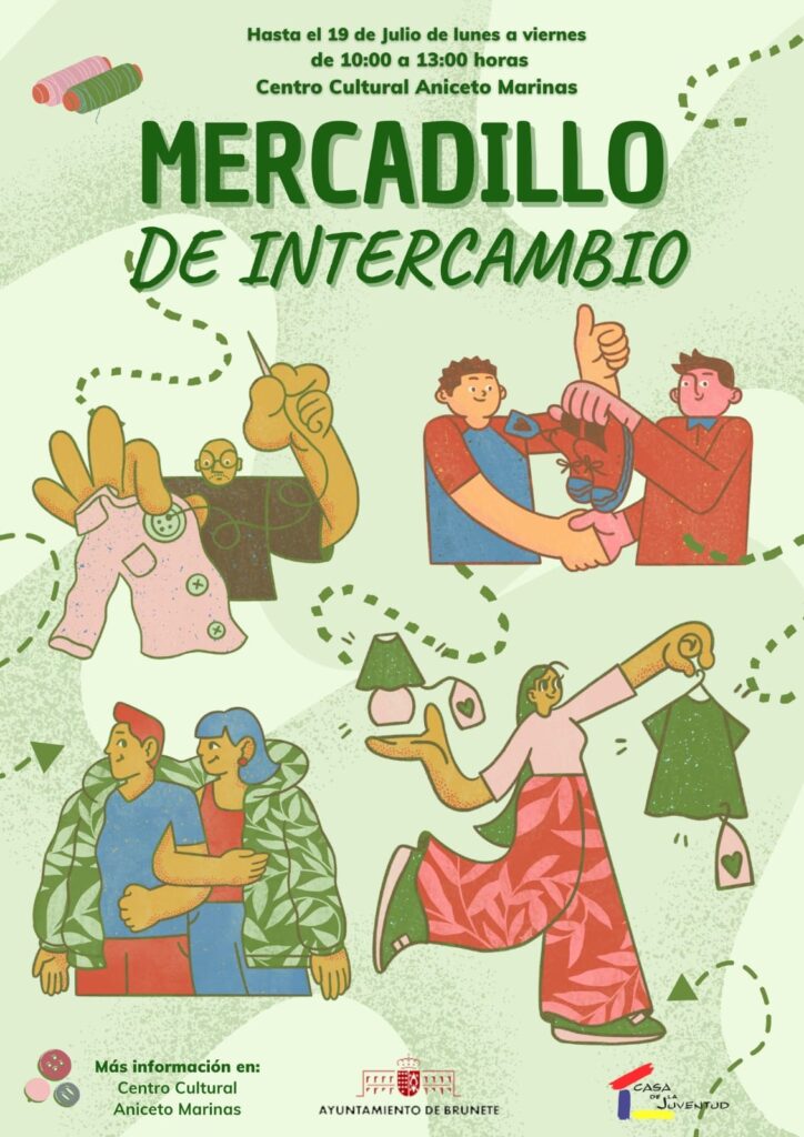 De lunes a viernes, durante el mes de julio, se pone en marcha el mercadillo de intercambio en el Centro Cultural Aniceto Marinas de Brunete. Un paso en favor de la economía circular y de la reutilización de nuestra ropa.
