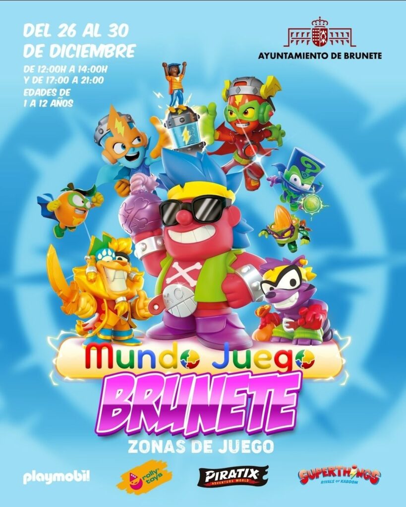 Brunete es una fiesta para los más pequeños en Navidad. Del 26 al 30 de diciembre, de 12 a 14 y de 17 a 21 horas, ponemos a disposición de los niños de 1 a 12 años Mundo juego, con atracciones para todos el el Polideportivo municipal José Ramón de la Morena.