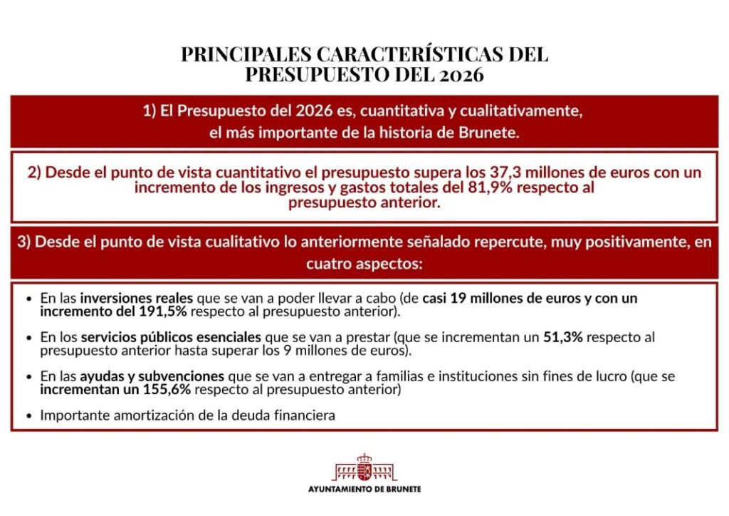 Es el mejor presupuesto de nuestra historia porque nace de un proyecto político claro, coherente y comprometido. Es un proyecto que piensa en Brunete, que protege Brunete y que transforma Brunete. Este presupuesto no es el final, sino el comienzo, y es el comienzo que queremos y que juntos vamos a conseguir. Porque nuestro municipio y vecinos lo merecen.