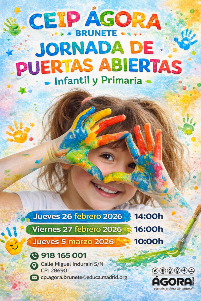 Ven y descúbrelo. El jueves 26 de febrero, el viernes 27 y el 5 de marzo, el CEIP Ágora abrirá sus puertas para que todos los padres y alumnos descubran sus instalaciones, sus profesores y su modelo educativo. Más información en: ÁGORA | EducaMadrid