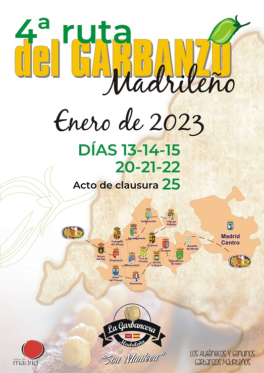 ¿En qué municipio y en qué restaurante cocinan mejor nuestros garbanzos? Anímate a descubrirlo. Se pone en marcha la 4ª RUTA DEL GARBANZO, una magnífica oportunidad para comer de cuchara y hacer turismo. Durante los días 13, 14, 15, 20, 21, 22 y 25 de enero, distintos establecimientos de localidades del sur y oeste de la Comunidad de Madrid pondrán a disposición de sus clientes platos con garbanzos de Madrid. En Brunete contamos con varios excelentes representantes. Ven y compruébalo.
