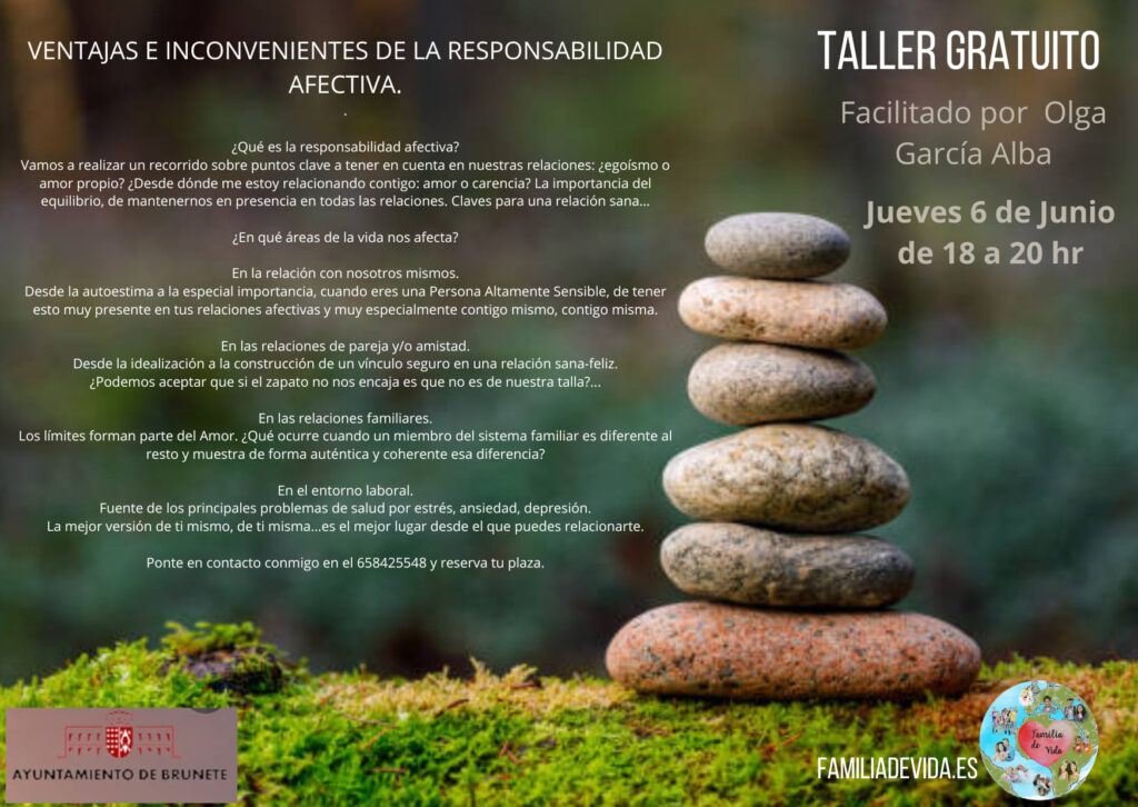 Claves para tener una relación sana, en equilibrio, sin egoísmos, pero con amor propio. Olga García Alba ofrece un taller gratuito el 6 de junio, de 18 a 20 horas. Puedes reservar tu plaza en el 658425548. Más información en Familia de Vida.