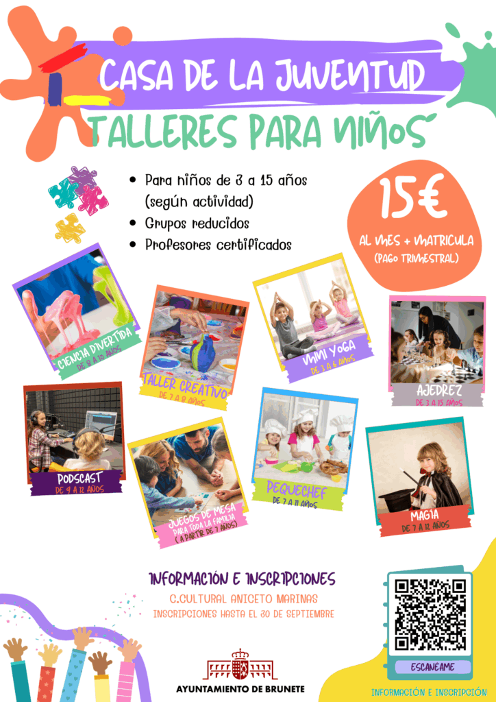 La Casa de la Juventud ha preparado una serie de interesantísimas actividades para este curso 2025-2026 dirigidas a niñ@s de 3 a 15 años y hay de todo tipo. Yoga, creatividad, ciencia, ajedrez, magia, cocina, juegos de mesa e incluso podcast. Échale un vistazo al calendario de días y horarios y apúntate.