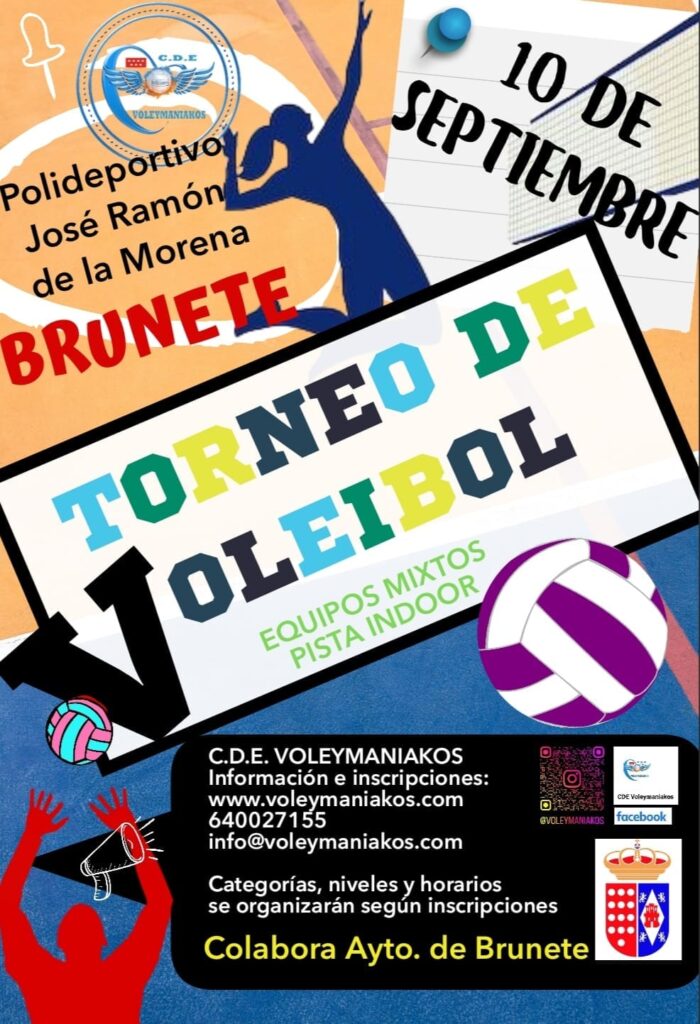 Siguen los torneos y el deporte en fiestas. El 10 de septiembre comienza el TORNEO DE VOLEIBOL para equipos mixtos y en pista indoor. Si te animas a participar puedes encontrar más información e inscripciones en www.voleimaniakos.com