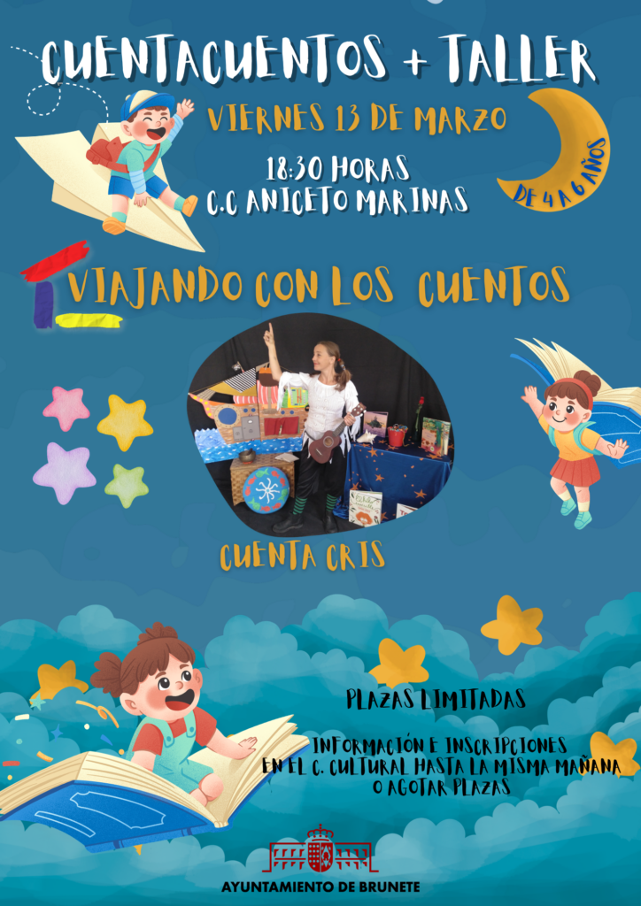 En el fondo te proponemos viajar con la imaginación. El viernes 13 de marzo, a las 18:30 de la tarde, en el Centro Cultural Aniceto Marinas de Brunete, disfruta con Cuenta Cris. Plaza limitadas.